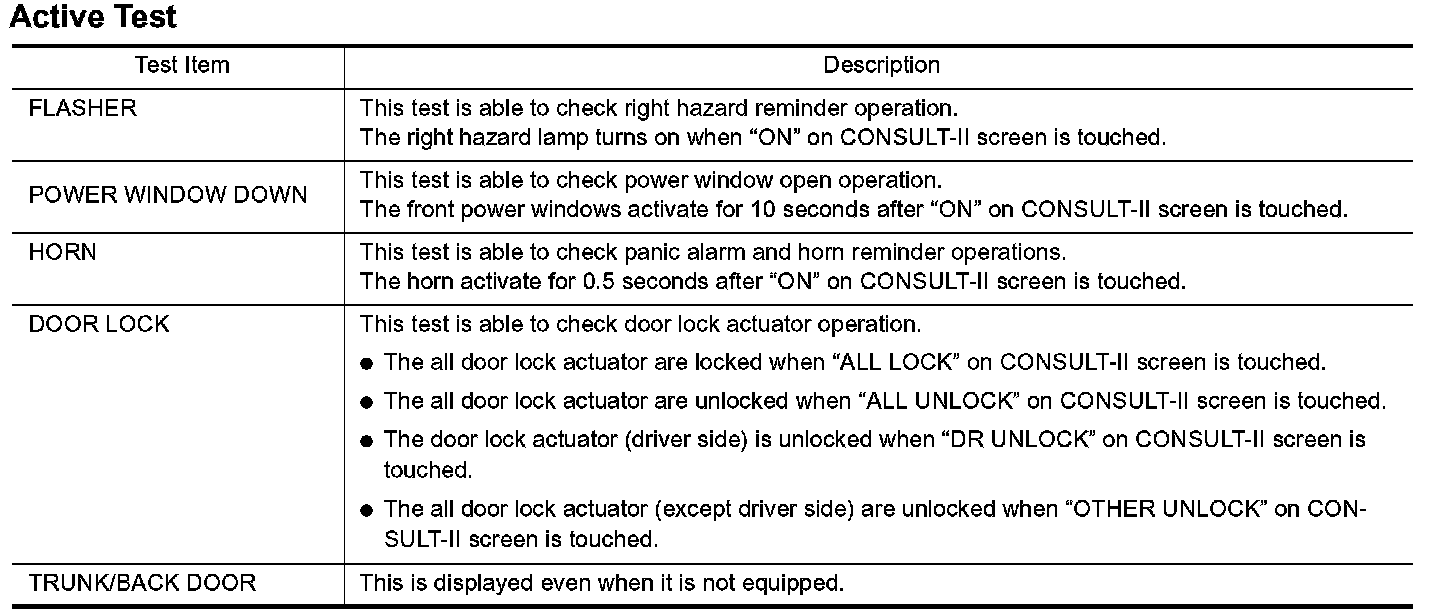 CONSULT-II Application Items