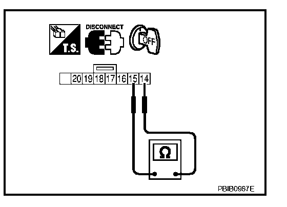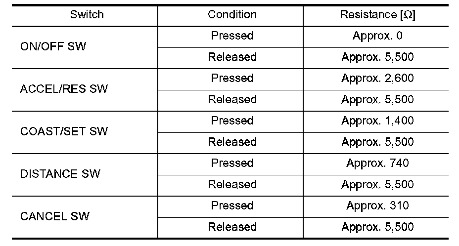 Check continuity between ICC steering switch terminals 14 and 15 with pushing each switch.