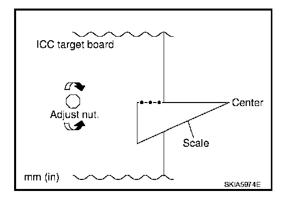 2. Adjust the sensor following the procedure on CONSULT-II (Turn manually the screw for up-down position adjustment. ICC sensor automatically adjust the right-left position.).