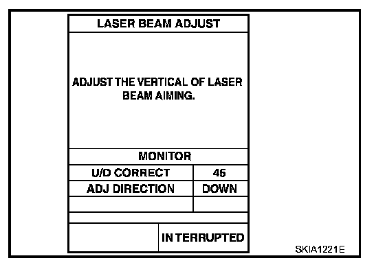 8. After the CONSULT-II displays "ADJUST THE VERTICAL OF LASER" turn the up-down direction adjusting screw until "U/D CORRECT" value is set in the range of ± 4.