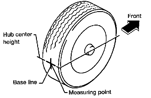 3. Put a mark on base line of the tread (rear side) of both tires at the same height of hub center. These are measuring points.