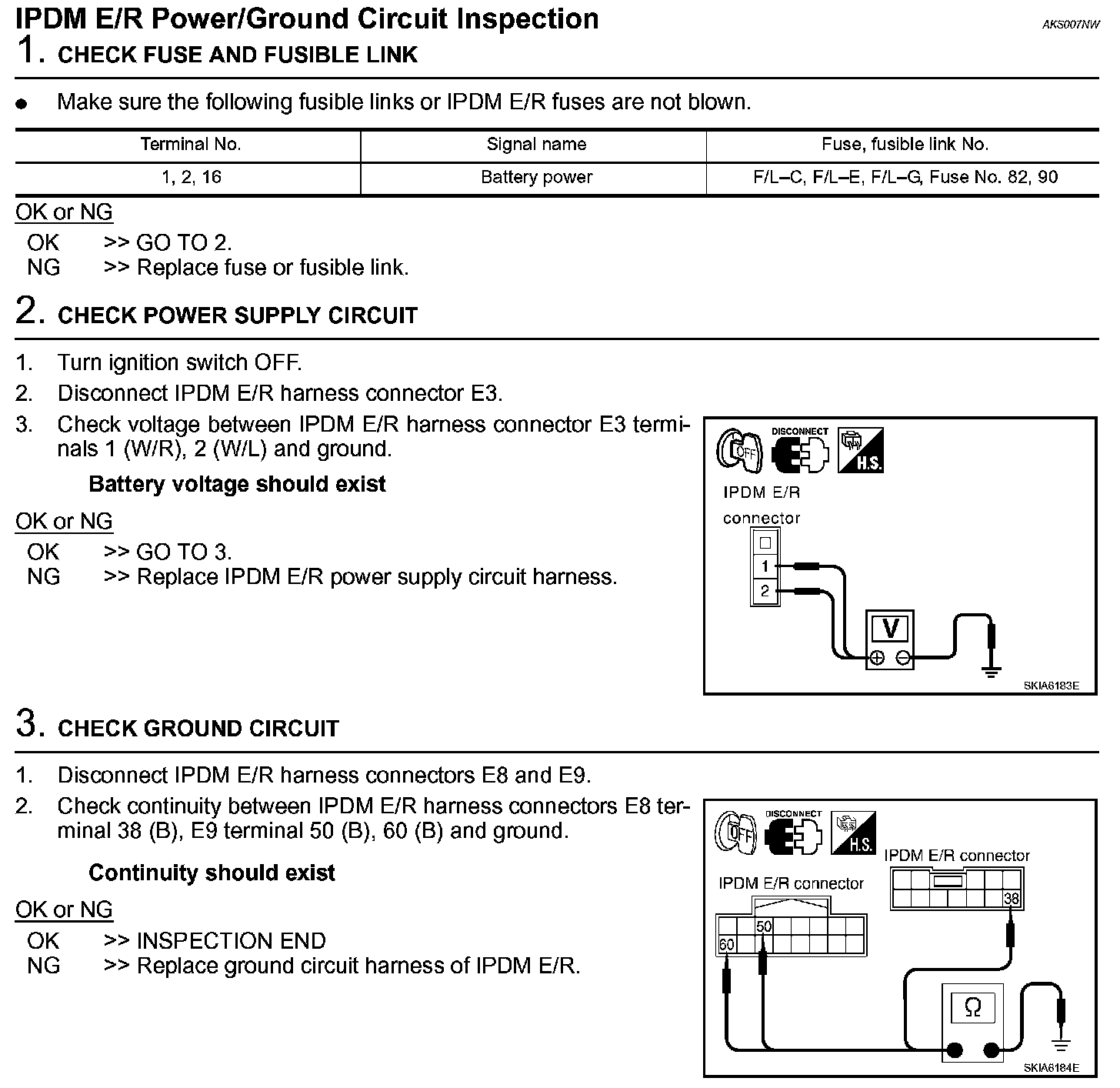 IPDM E/R Power/Ground Circuit Inspection (Steps 1 - 3):