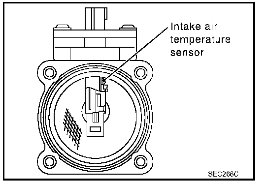 The mass air flow sensor is placed in the stream of intake air. It measures the intake flow rate by measuring a part of the entire intake flow. It consists of a hot film that is supplied with electric current from the ECM. The temperature of the hot film is controlled by the ECM a certain amount. The heat generated by the hot film is reduced as the intake air flows around it. The more air, the greater the heat loss. Therefore, the ECM must supply more electric current to maintain the temperature of the hot film as air flow increases. The ECM detects the air flow by means of this current change.