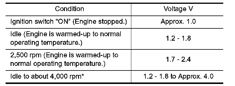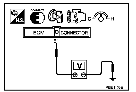 3. Check voltage between ECM terminal 51 (Mass air flow sensor signal) and ground.