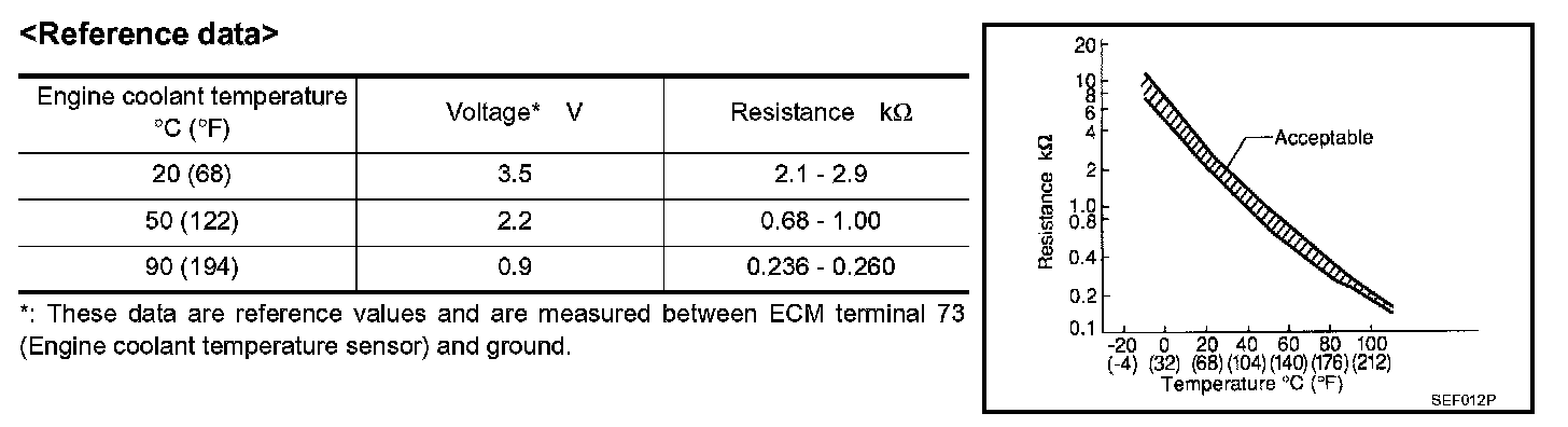 The engine coolant temperature sensor is used to detect the engine coolant temperature. The sensor modifies a voltage signal from the ECM. The modified signal returns to the ECM as the engine coolant temperature input. The sensor uses a thermistor which is sensitive to the change in temperature. The electrical resistance of the thermistor decreases as temperature increases.