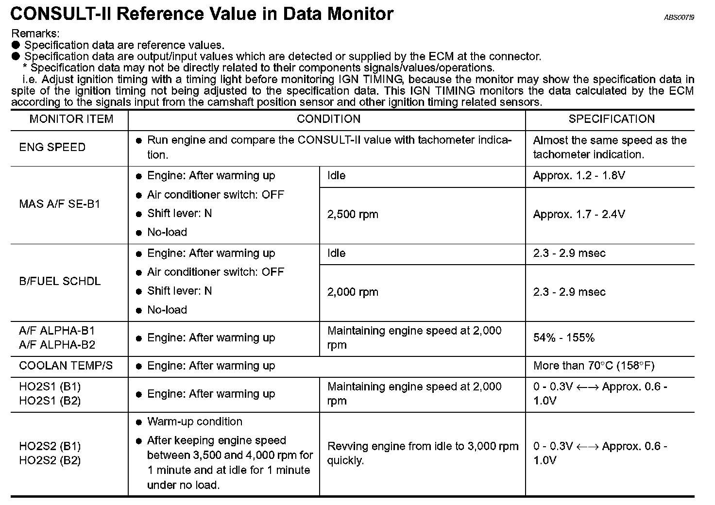 CONSULT-II Reference Value in Data Monitor Part 2: