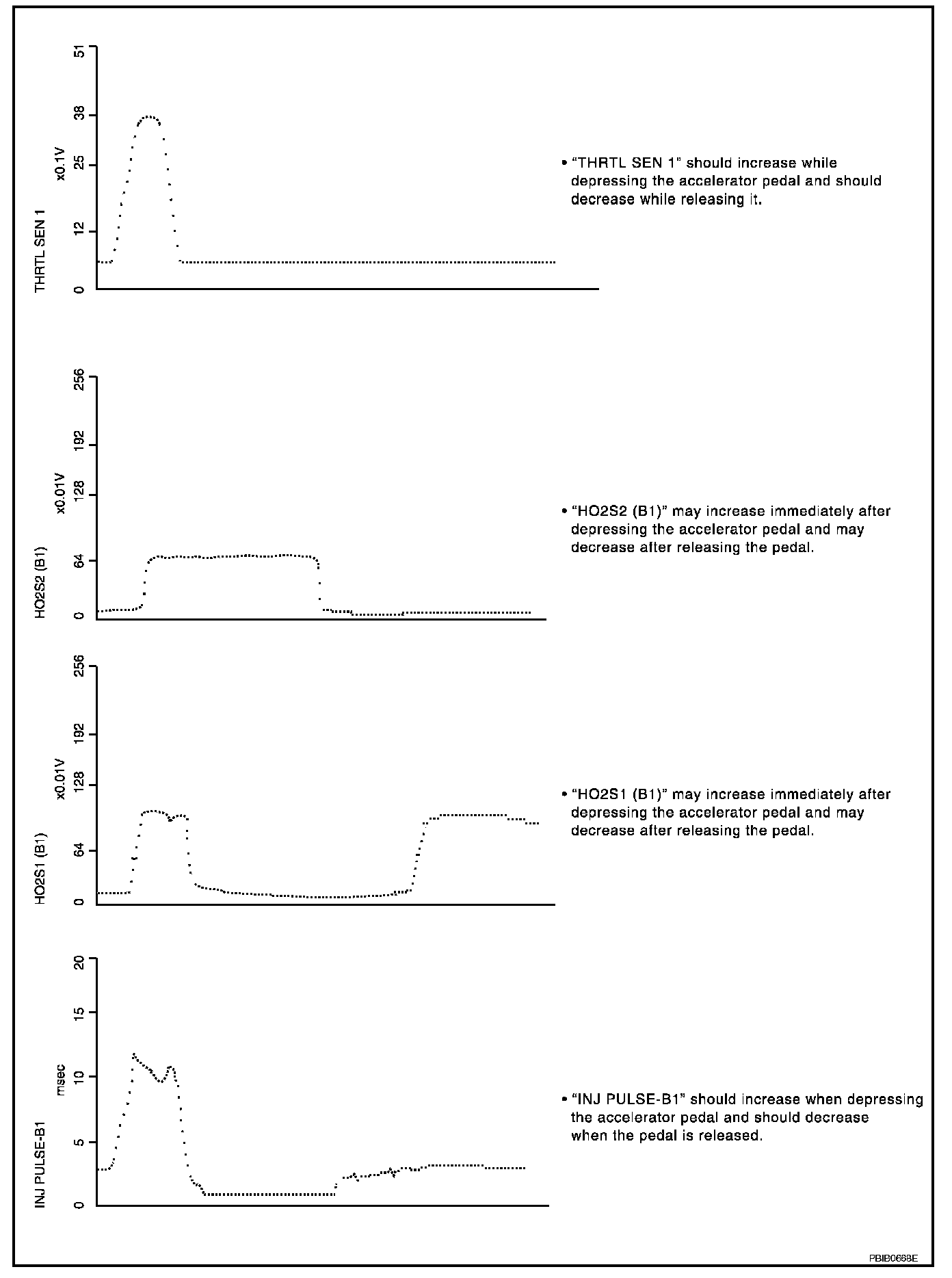 ENG SPEED, MAS A/F SE-B1, THRTL SEN 1, HO2S2 (B1), HO2S1 (B1), INJ PULSE-B1