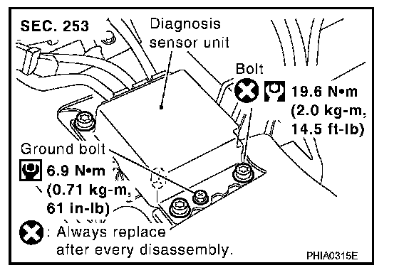 After replacing the diagnosis sensor unit, confirm that the diagnosis sensor unit identification is correct for the vehicle as equipped.