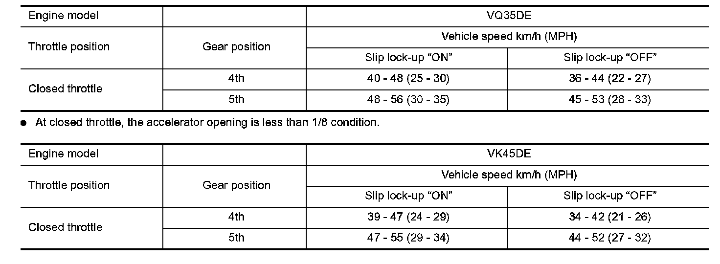 Vehicle Speed When Performing and Releasing Slip Lock-up