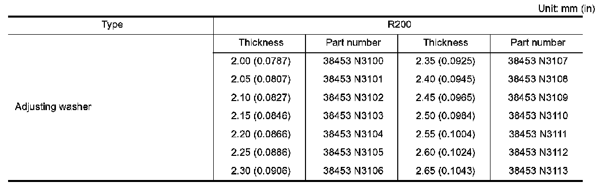 AVAILABLE PINION HEIGHT ADJUSTING WASHERS