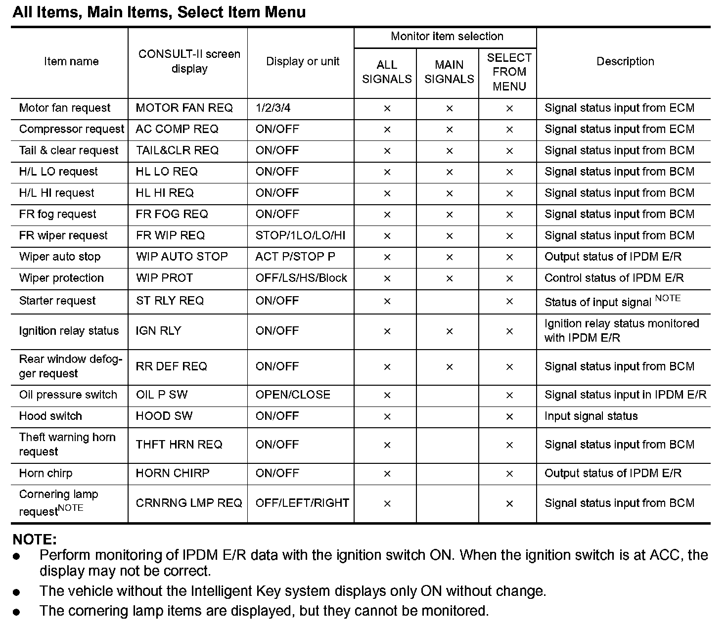 CONSULT-II performs the following functions with combination of data receiving, command and transmission using the CAN communication line from the IPDM E/R.