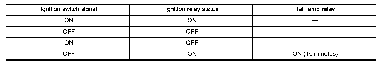 - When a state of ignition relay having built-in does not agree with a state of Ignition switch signal input by a CAN communication from BCM, IPDM E/R lets tail lamp relay operate.