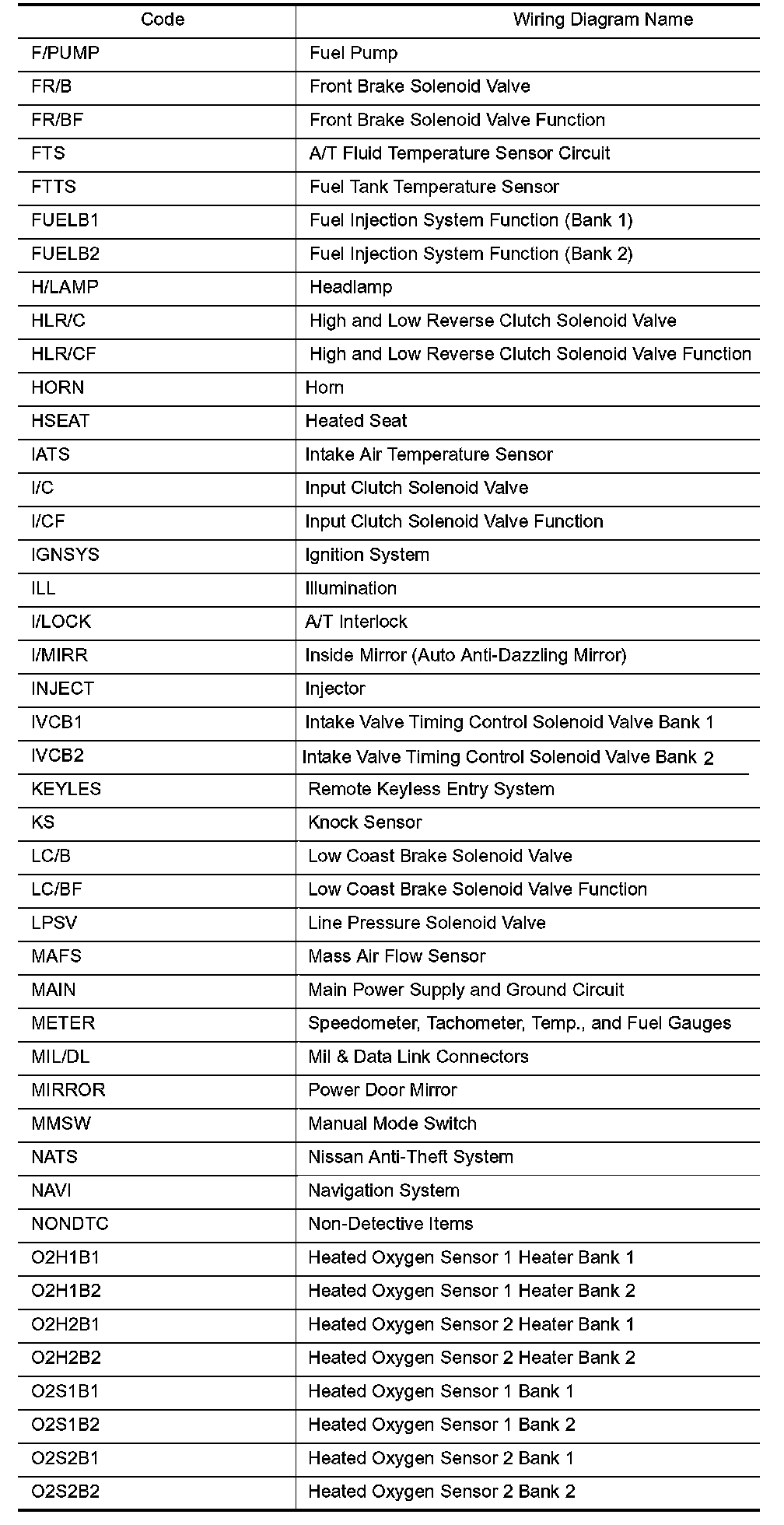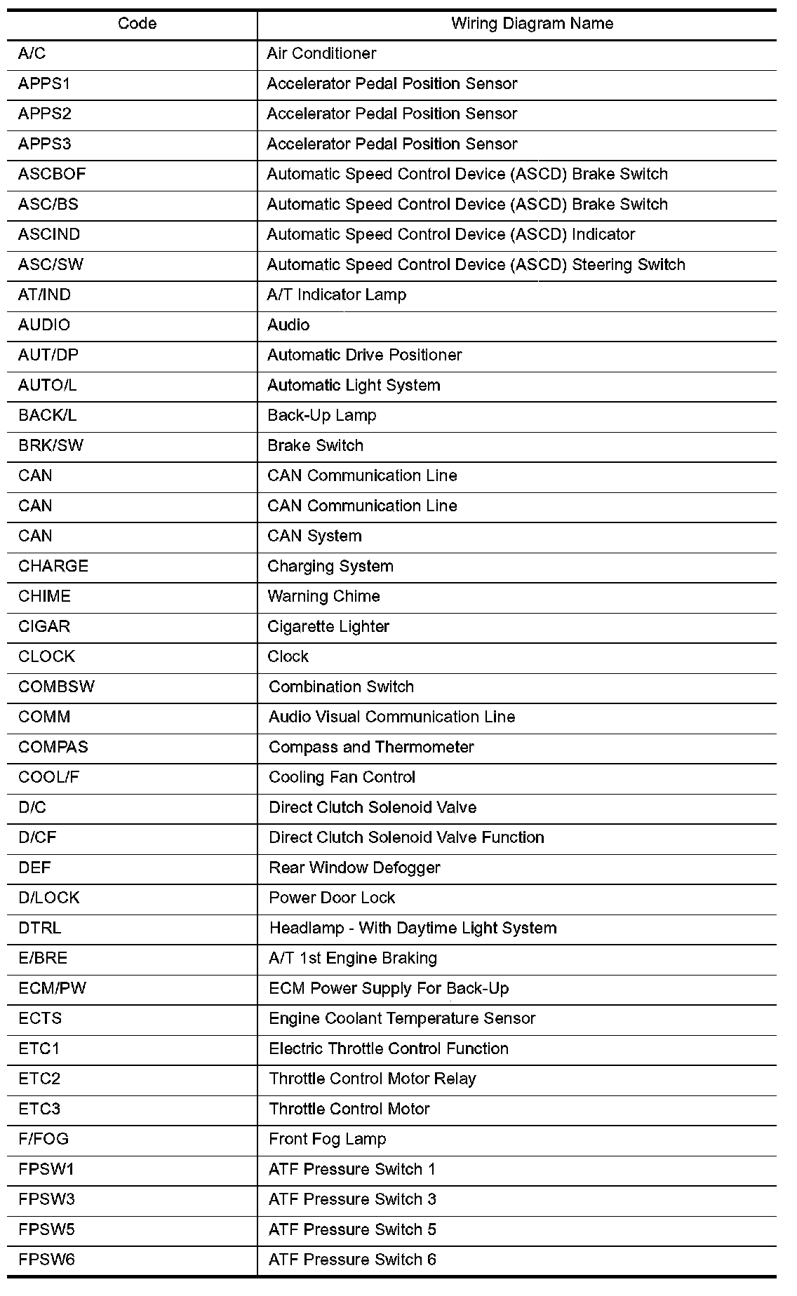 Wiring Diagram Codes/Abbreviations Part 1: