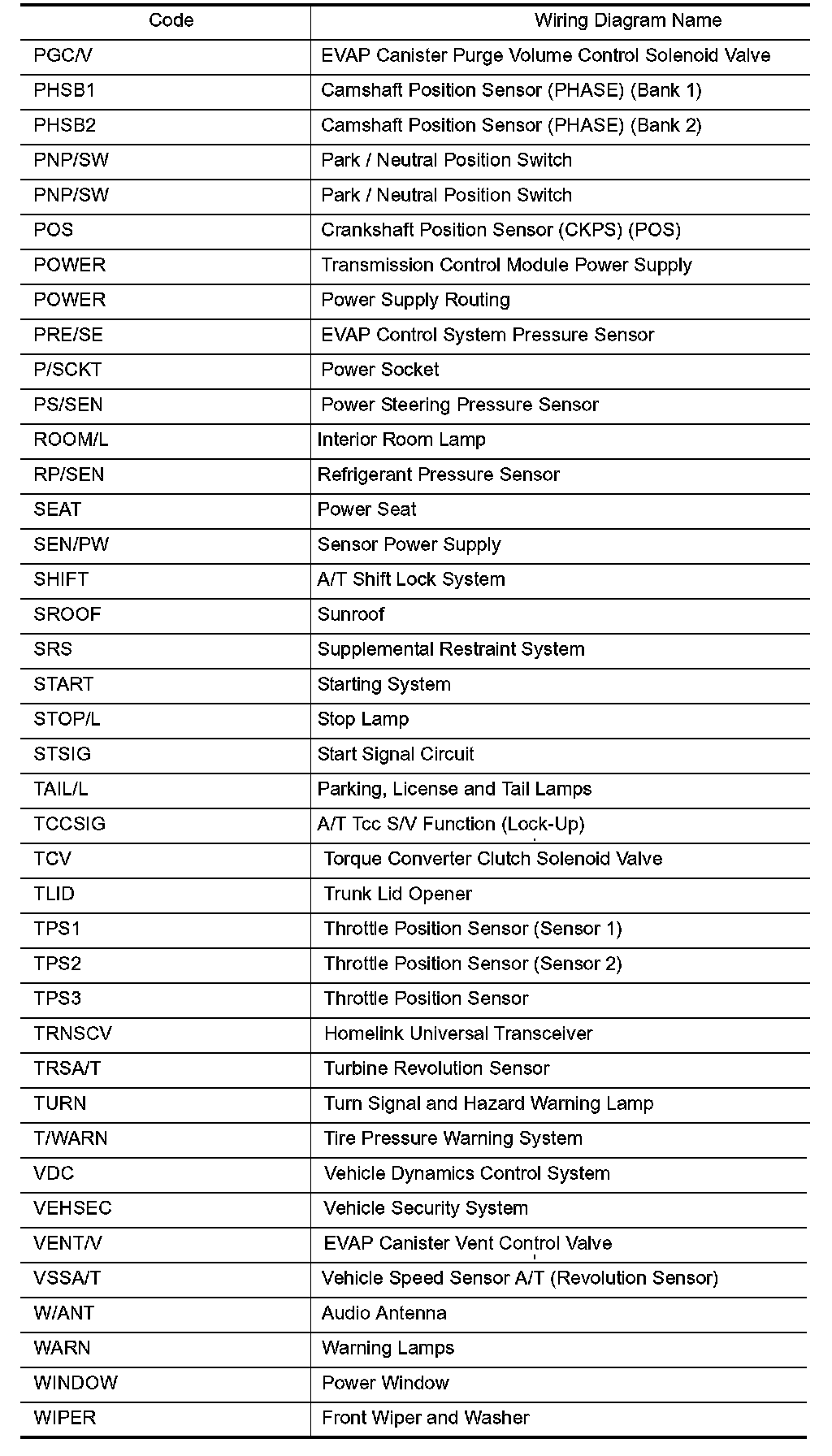 Wiring Diagram Codes/Abbreviations Part 3: