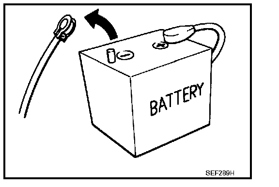 - Before removing parts, turn ignition switch OFF and then disconnect battery ground cable.
