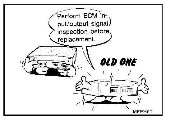 - Before replacing ECM, perform ECM Terminals and Reference Value inspection and make sure ECM functions properly.