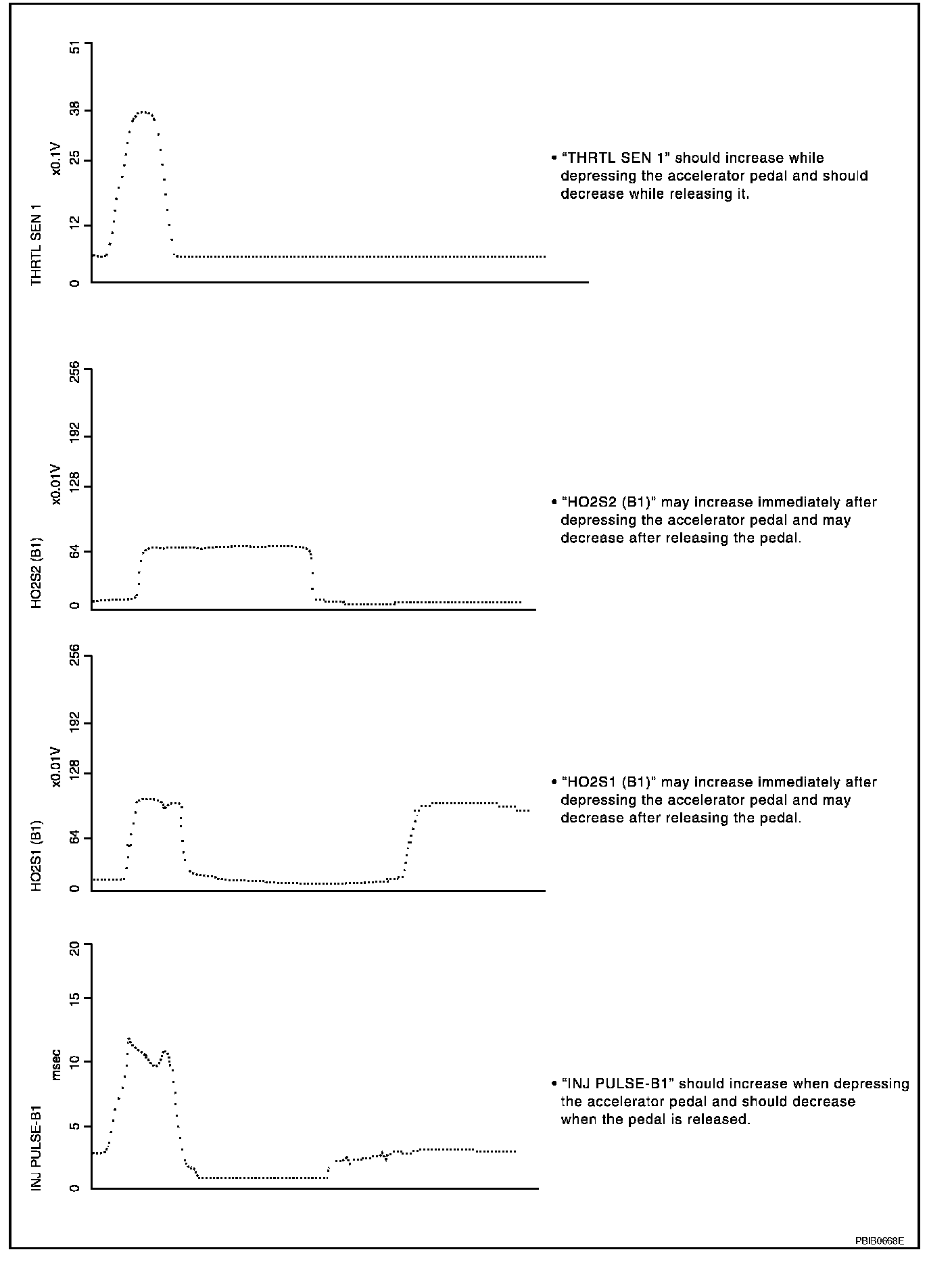 ENG SPEED, MAS A/F SE-B1, THRTL POS SEN, HO2S2 (B1), HO2S1 (B1), INJ PULSE-B1