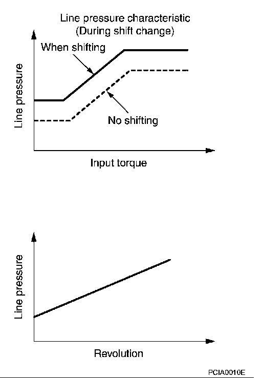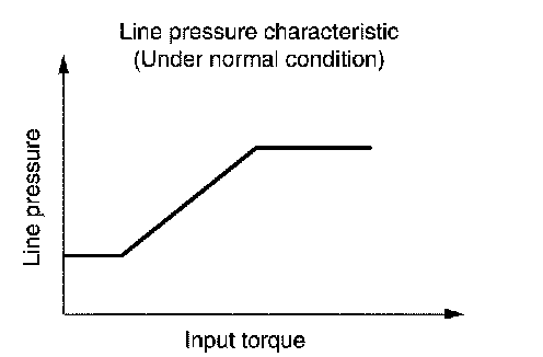 The necessary and adequate line pressure for shift change is set. For this reason, line pressure pattern setting corresponds to input torque and gearshift selection. Also, line pressure characteristic is according to engine speed, during engine brake operation.
