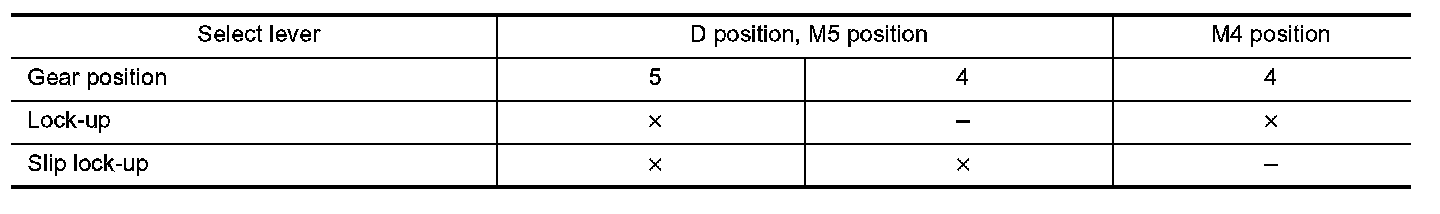 Lock-up Operation Condition Table
