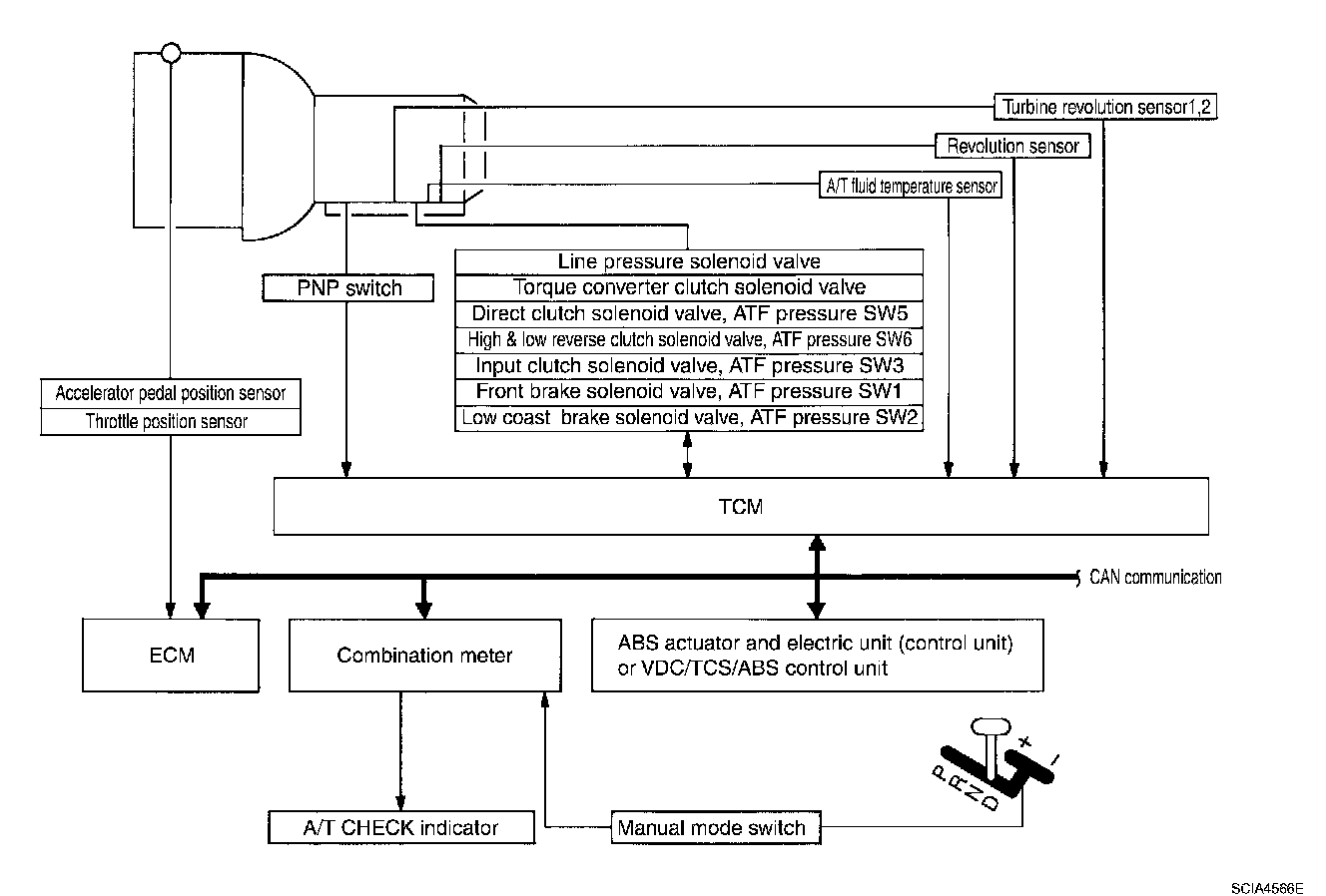 ^ Determine required line pressure, shifting point, lock-up operation, and engine brake operation.