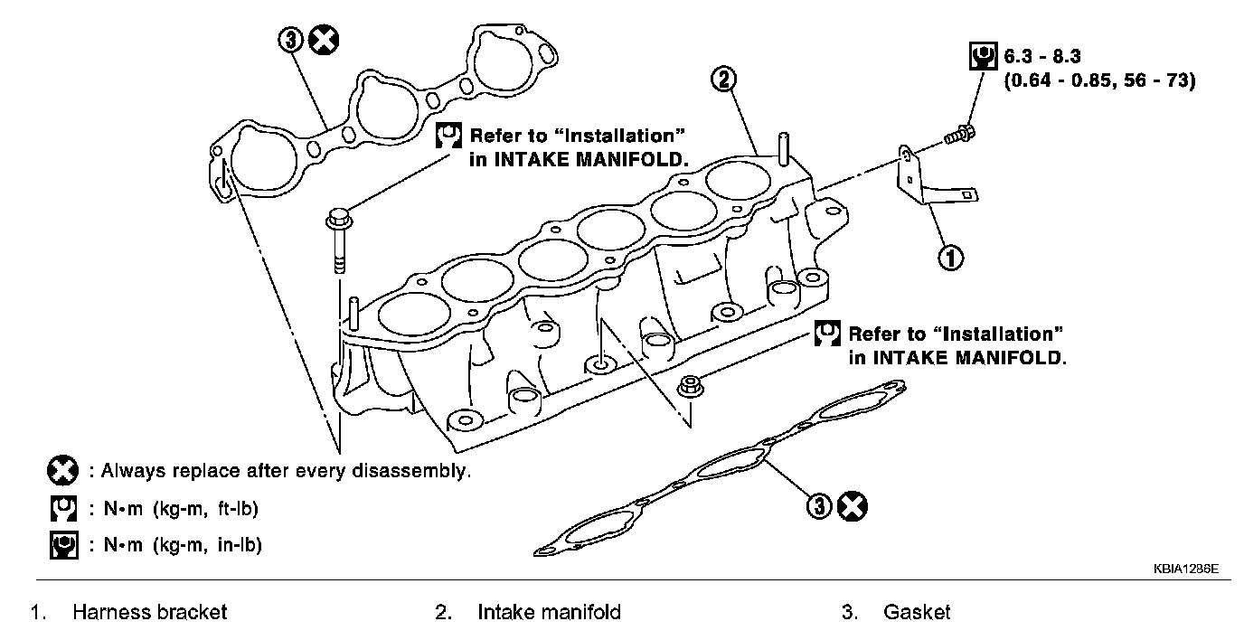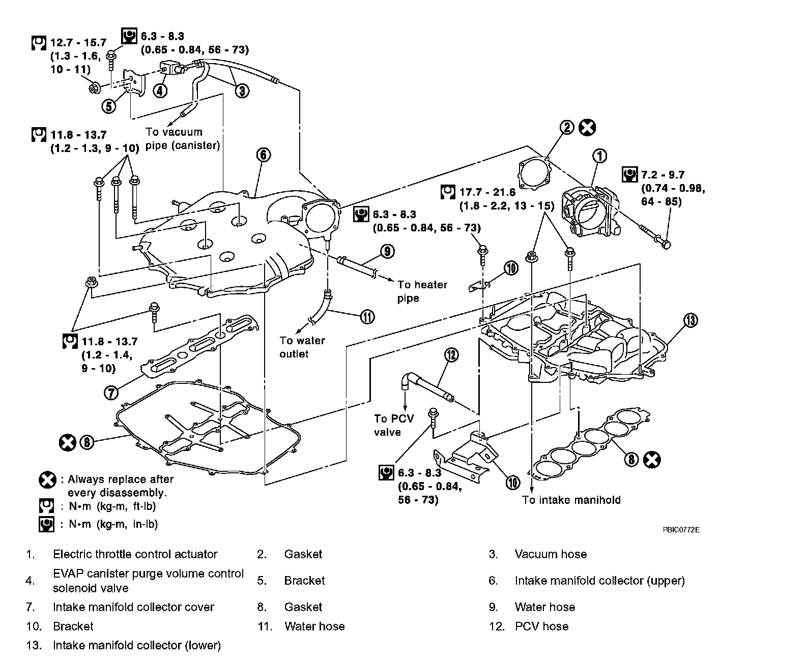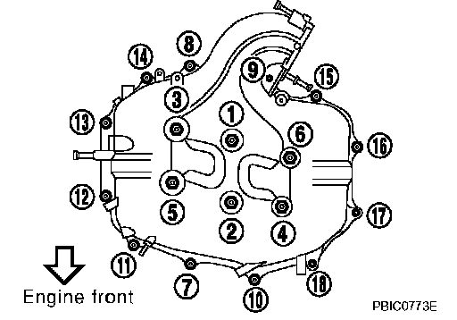 Intake manifold collector (lower) 11.8 - 13.7 Nm (1.2 - 1.3 kgf-cm, 9 - 10 ft. lbs.)