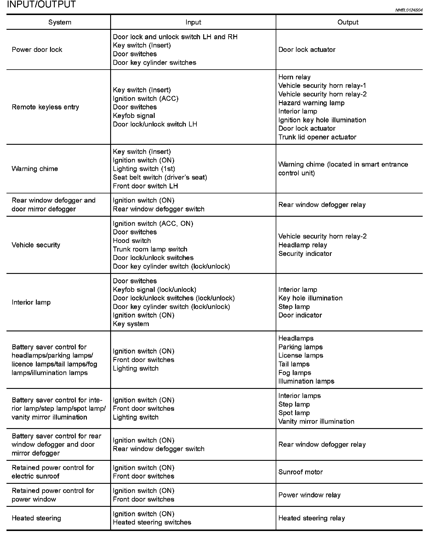 OUTLINEThe smart entrance control unit totally controls the following body electrical system operations.