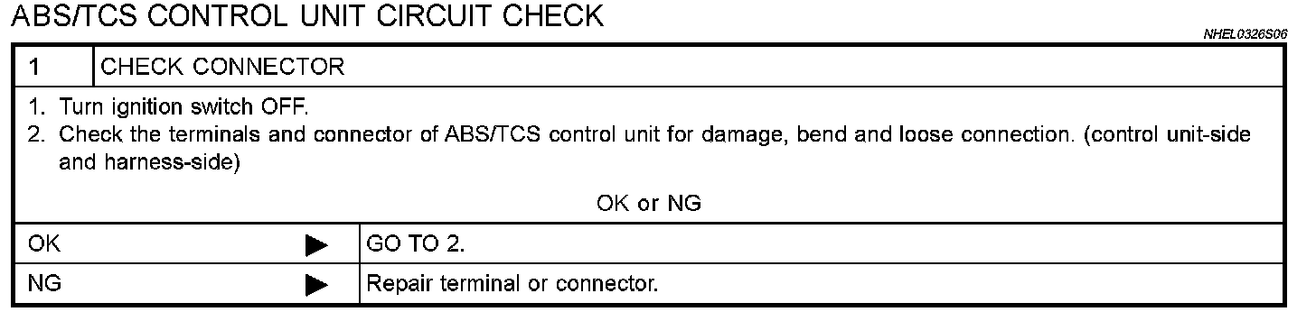 ABS/TCS Control Unit Circuit Check (Step 1):