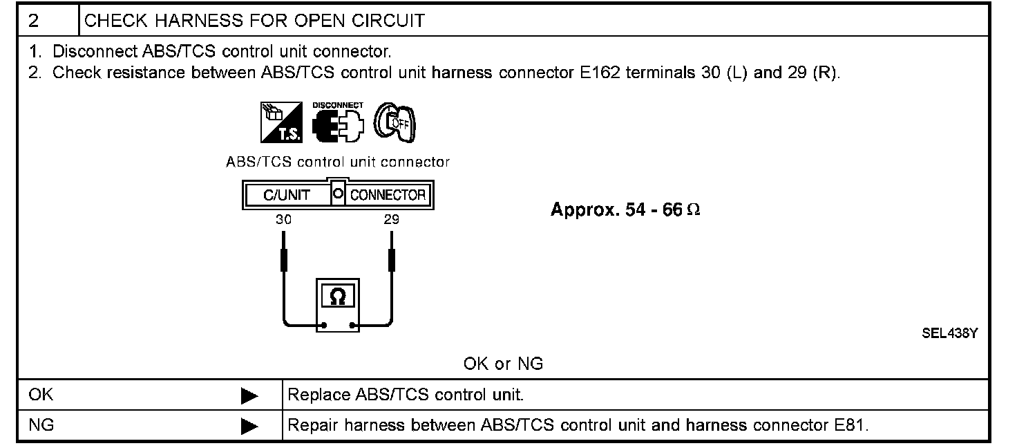 ABS/TCS Control Unit Circuit Check (Step 2):