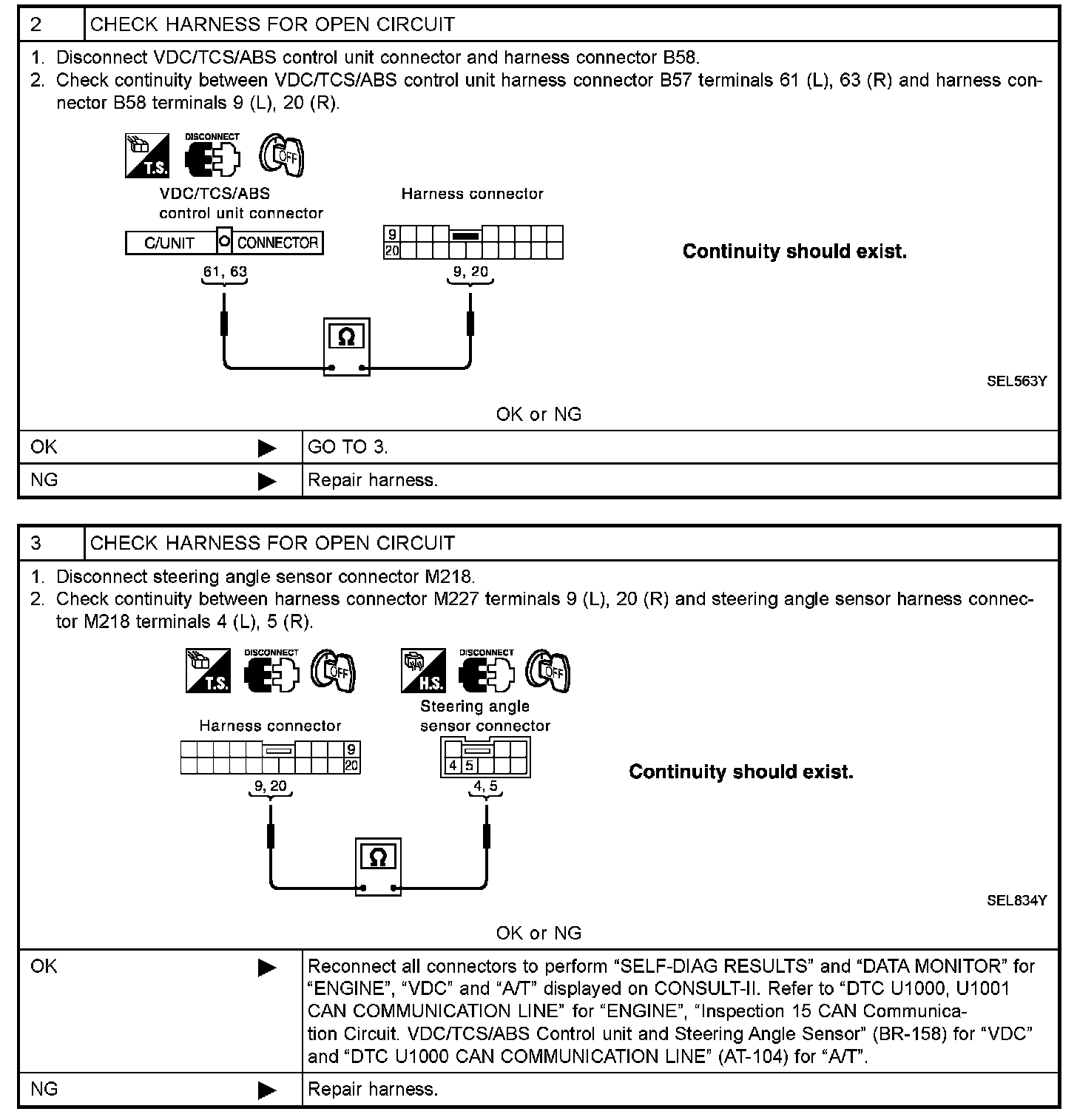 Circuit Check Between VDC/TCS/ABS Unit & Steering Angle Sensor