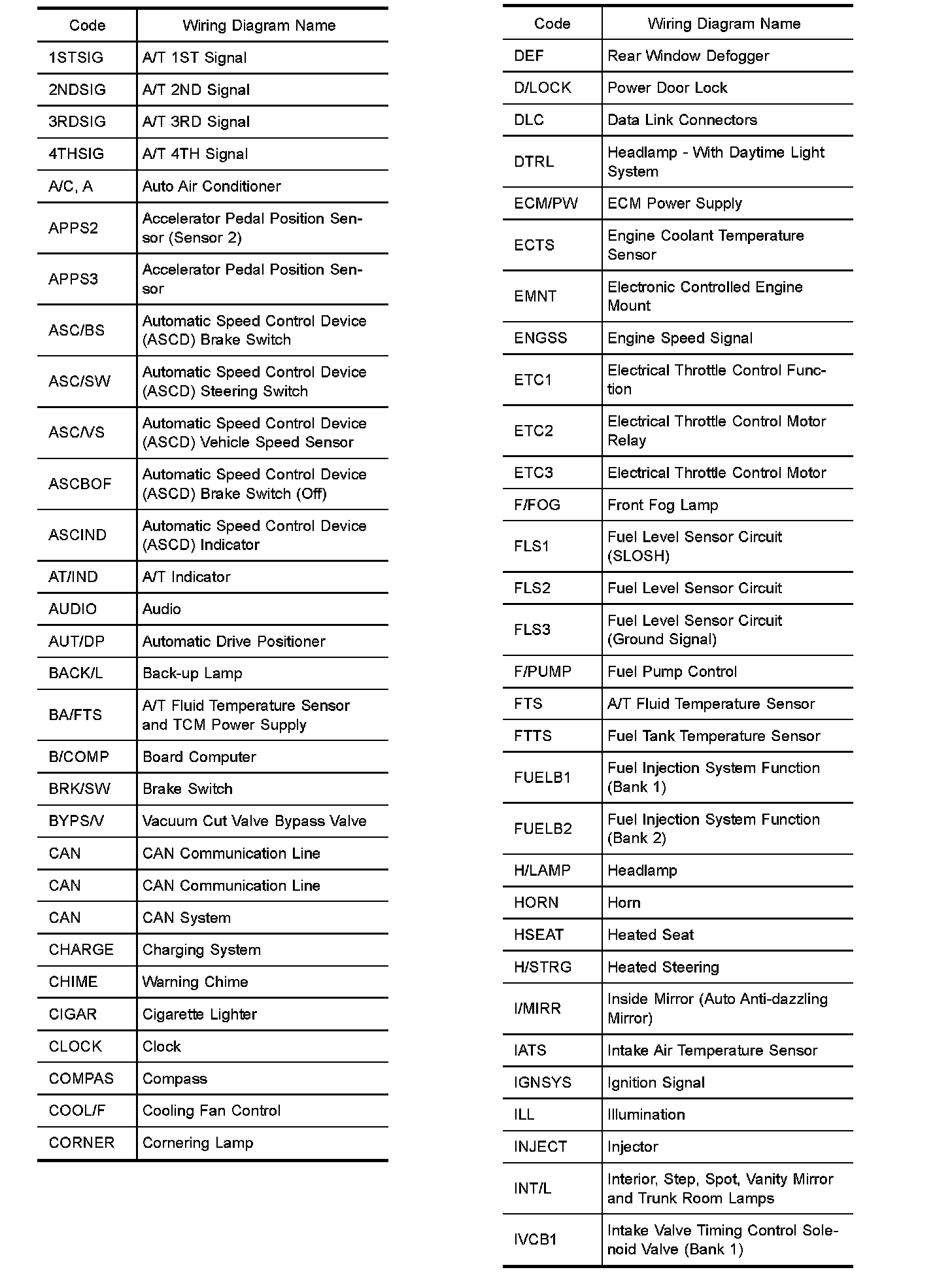 Wiring Diagram Codes/Abbreviations Part 1: