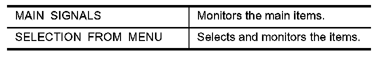 4. If "SELECTION FROM MENU" is selected, touch the desired monitor item. If "MAIN SIGNALS" is selected, the main item required to control is monitored.