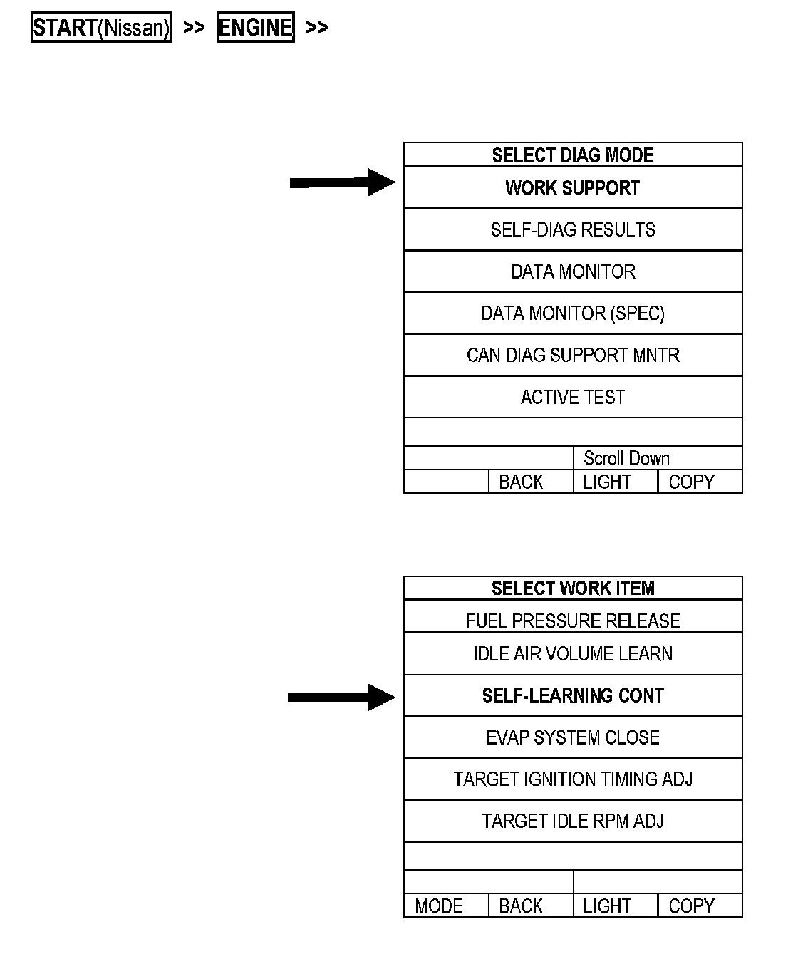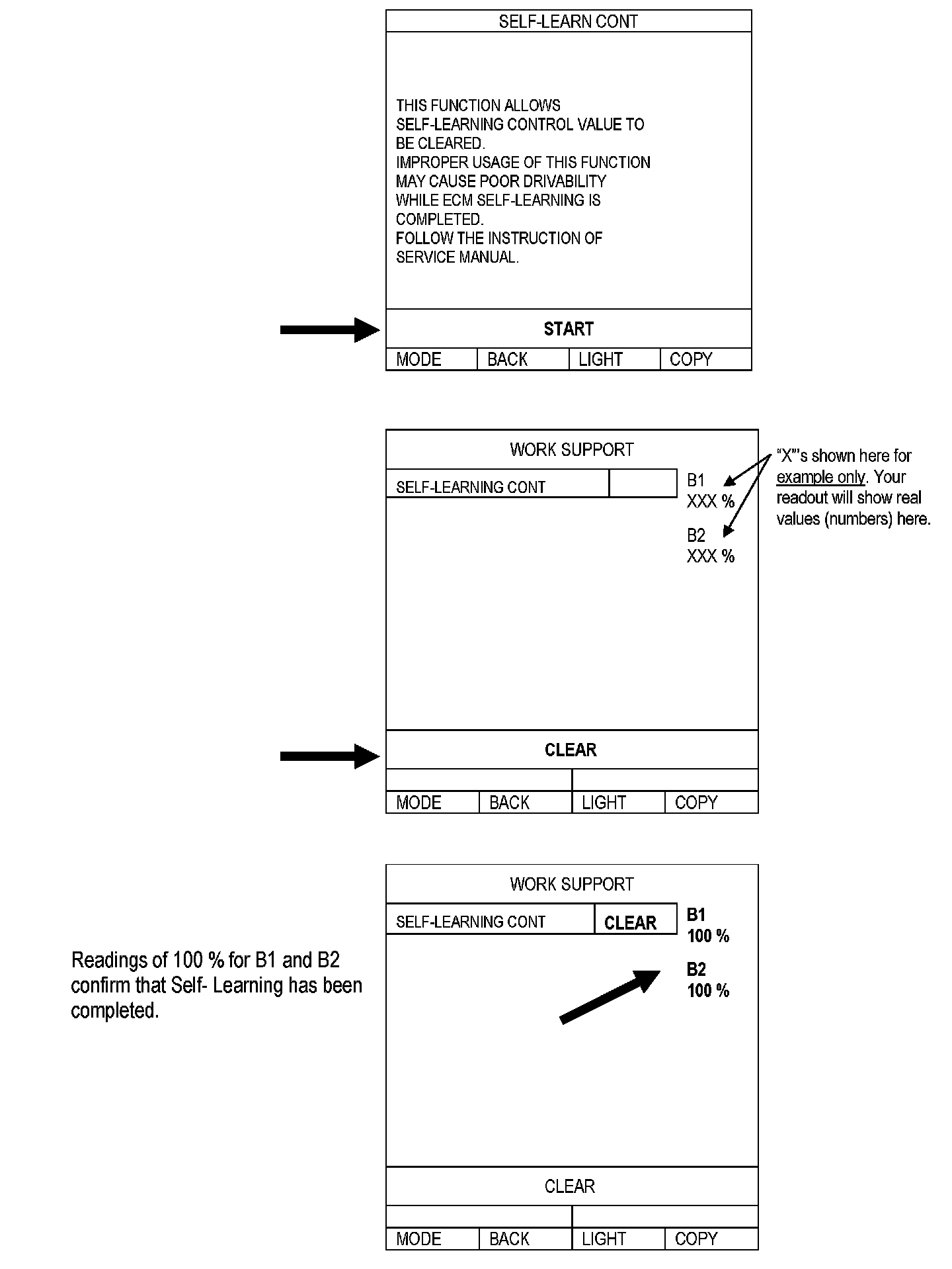 2. Clear the engine Self-Learning. Use CONSULT-II as shown.
