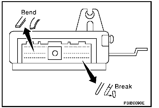 - When connecting or disconnecting pin connectors into or from ECM, take care not to damage pin terminals (bend or break).
