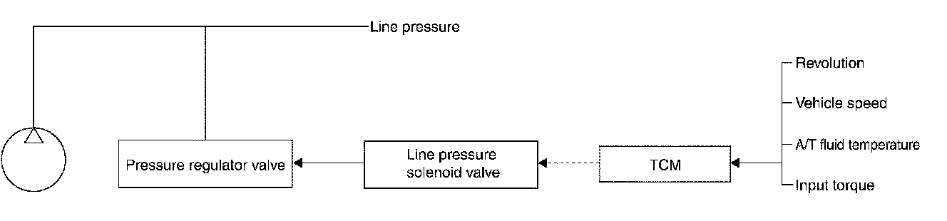 ^ In order to obtain the most appropriate line pressure characteristic to meet the current driving state, the TCM controls the line pressure solenoid current valve and thus controls the line pressure.