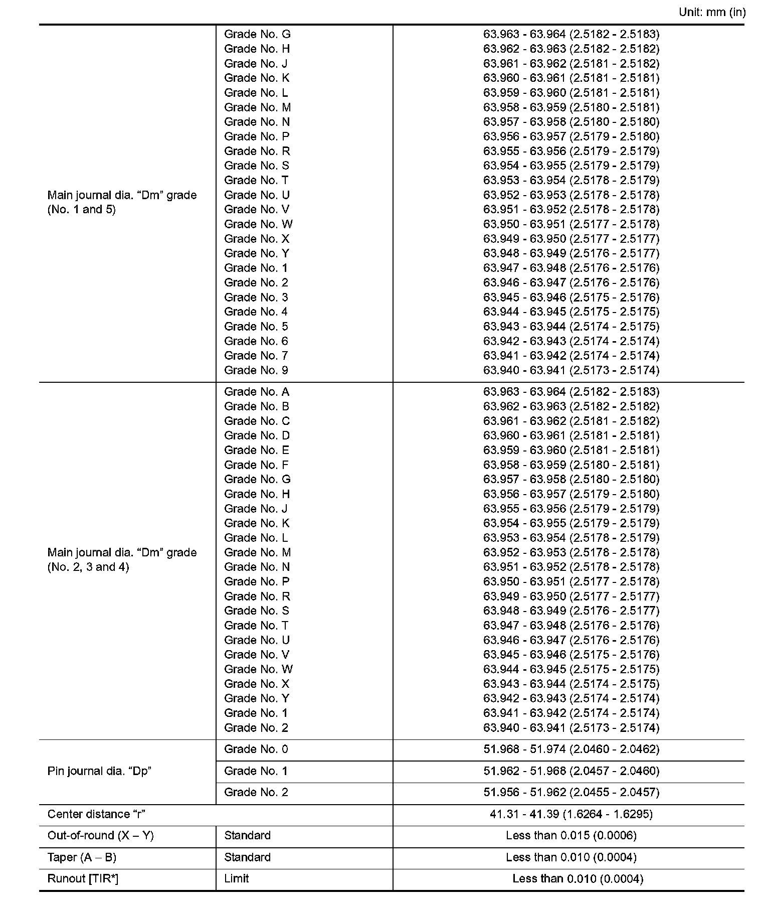 Main Bearings Selection Table (No. 1 and No. 5 journal):