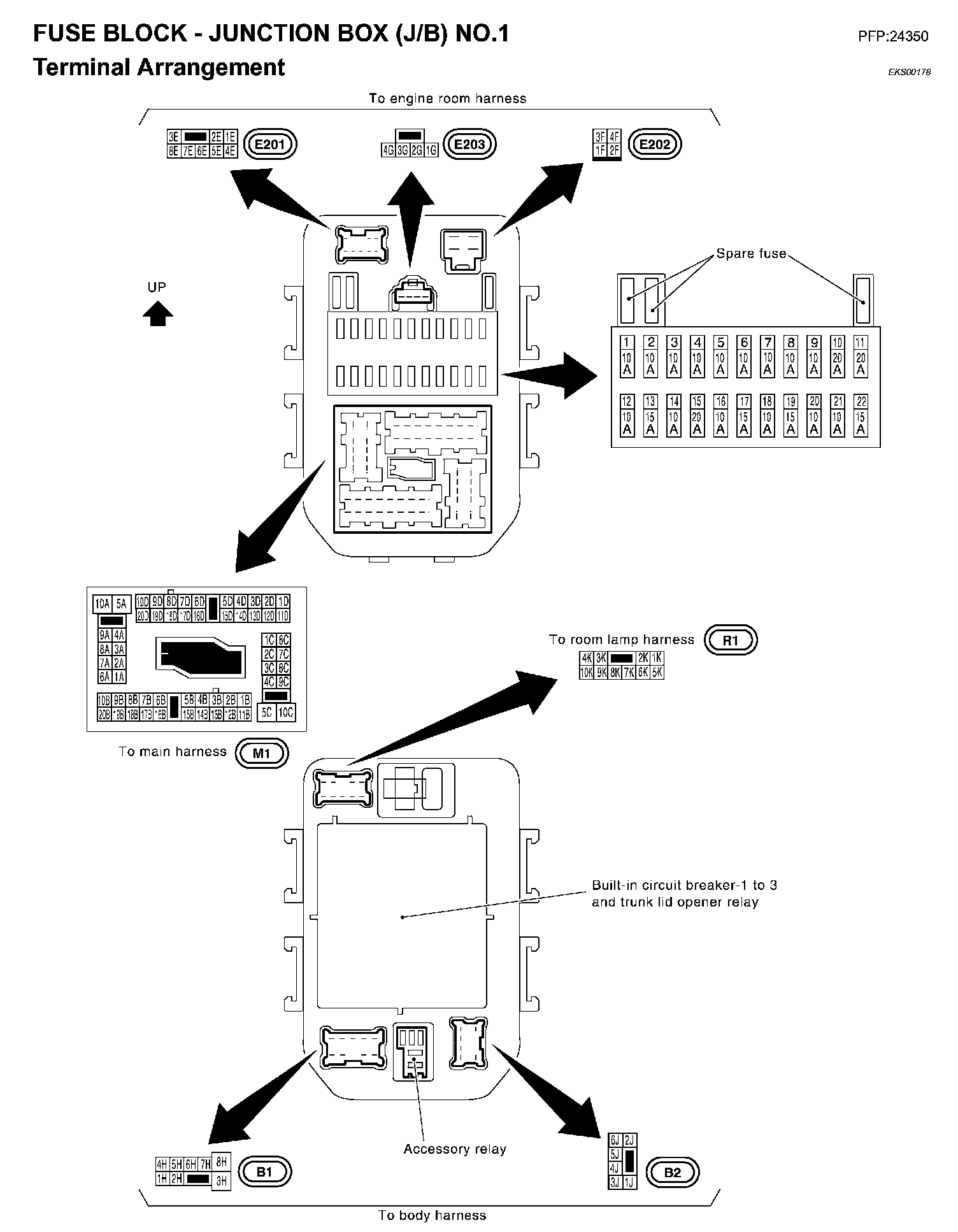 Fuse Block-Junction Box (J/B) No.1 - Terminal Arrangement: