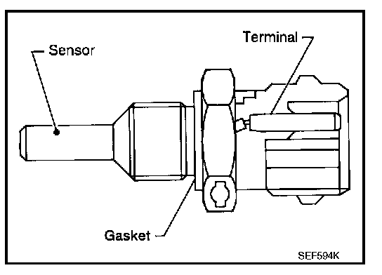 The engine coolant temperature sensor is used to detect the engine coolant temperature. The sensor modifies a voltage signal from the ECM. The modified signal returns to the ECM as the engine coolant temperature input. The sensor uses a thermistor which is sensitive to the change in temperature. The electrical resistance of the thermistor decreases as temperature increases.