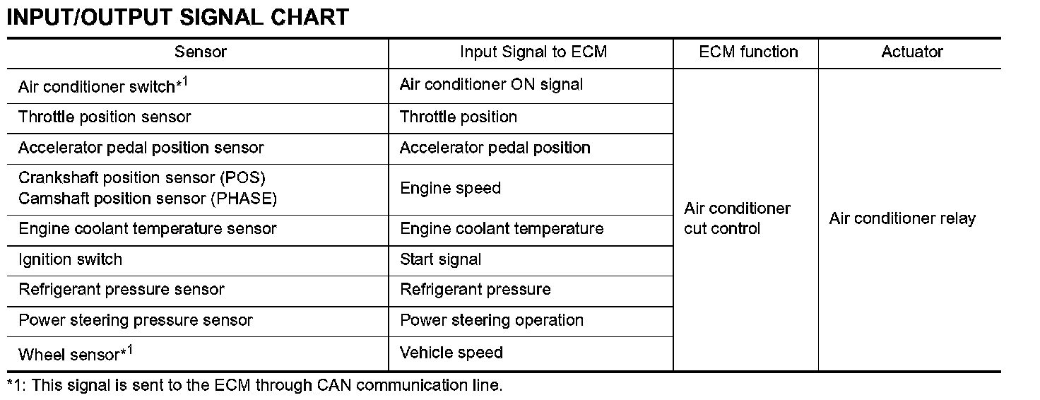 Air Conditioning Cut ControlINPUT/OUTPUT SIGNAL CHART