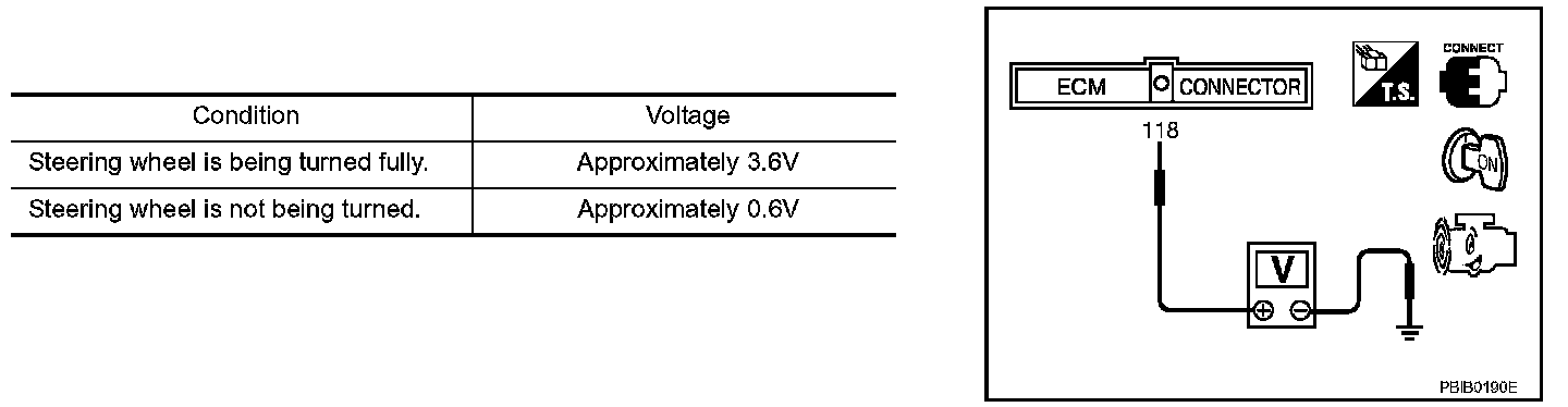 3. Check voltage between ECM terminal 118 and ground under the given conditions.