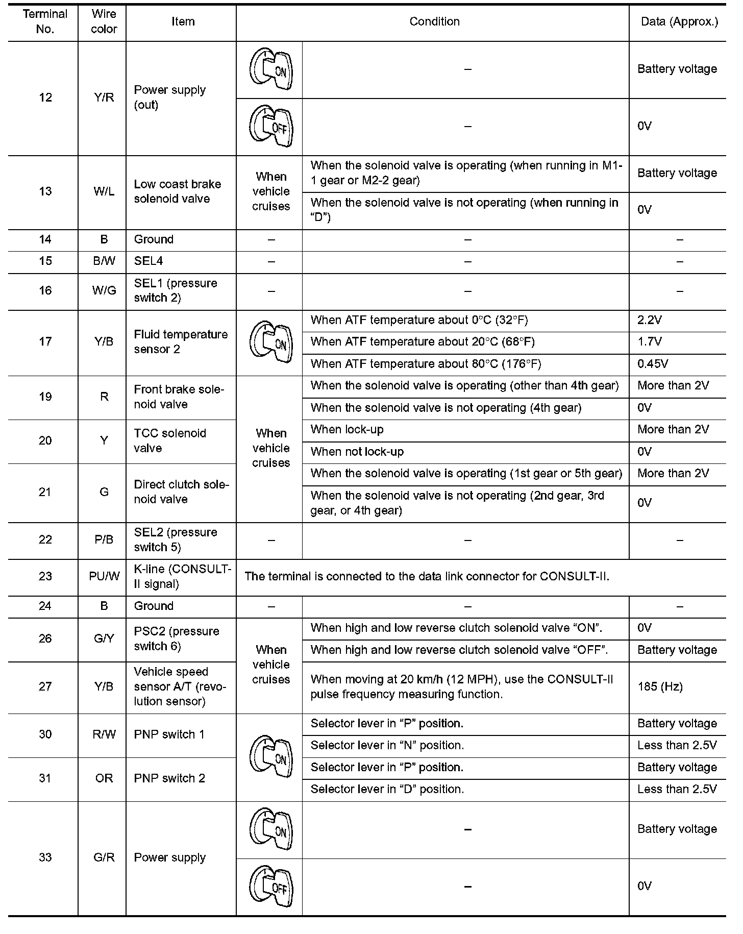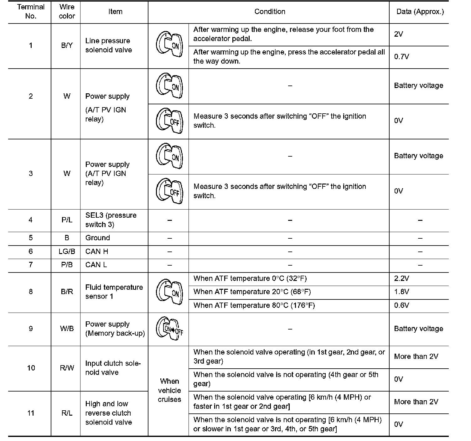 Data are reference value and are measured between each terminal and ground.