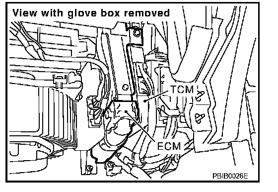 1. ECM is located behind the glove box. For this inspection, remove glove box.
