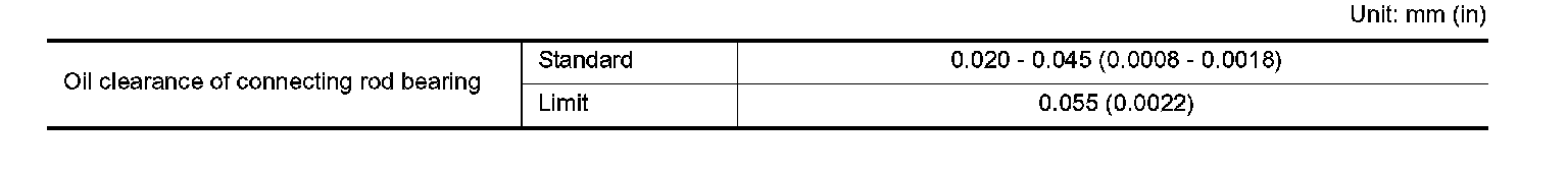 ^ If out of the standard, replace connecting rod bearings.