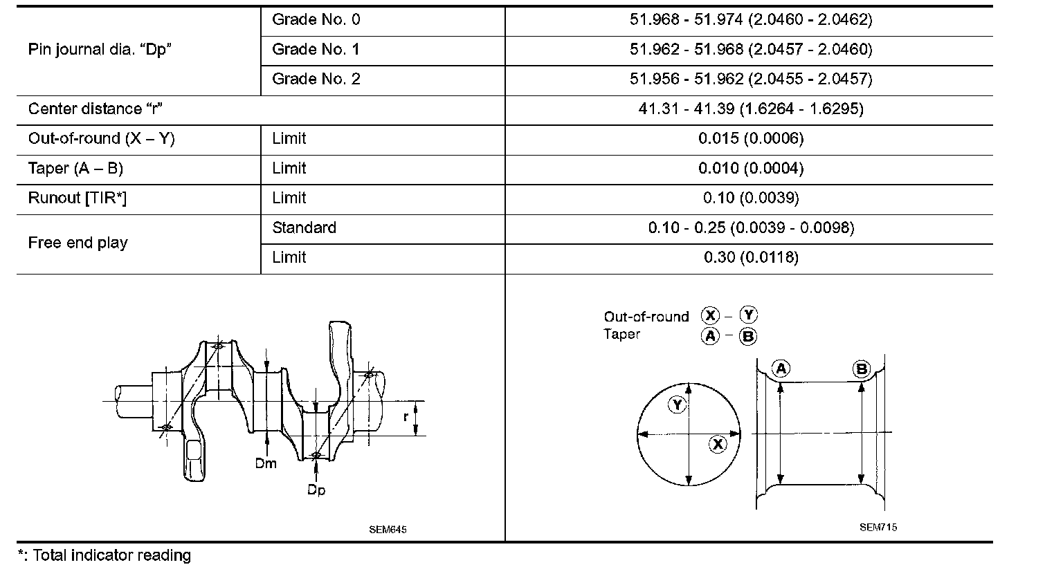 ^ If the measured value exceeds the limit, correct or replace crankshaft.