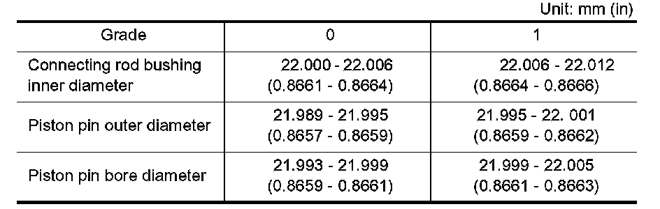 ^ Piston pin hole (piston pin) grade is provided only for the parts installed at the plant. For service parts, no grades can be selected. (Only 0 grade is available.)