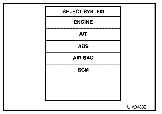 If "BCM" is not indicated, refer to "CONSULT-II Data Link Connector (DLC) Circuit".