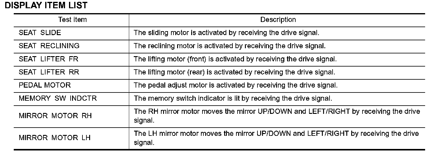 If active test is performed, reset seat memory and key fob interlock drive positioner after performing work.