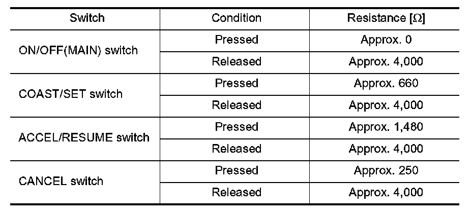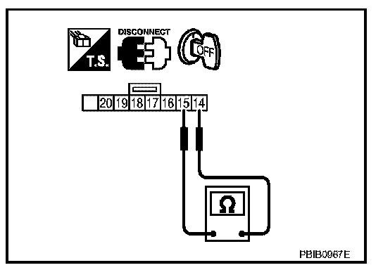 Check continuity between ASCD steering switch terminals 14 and 15 with pushing each switch.