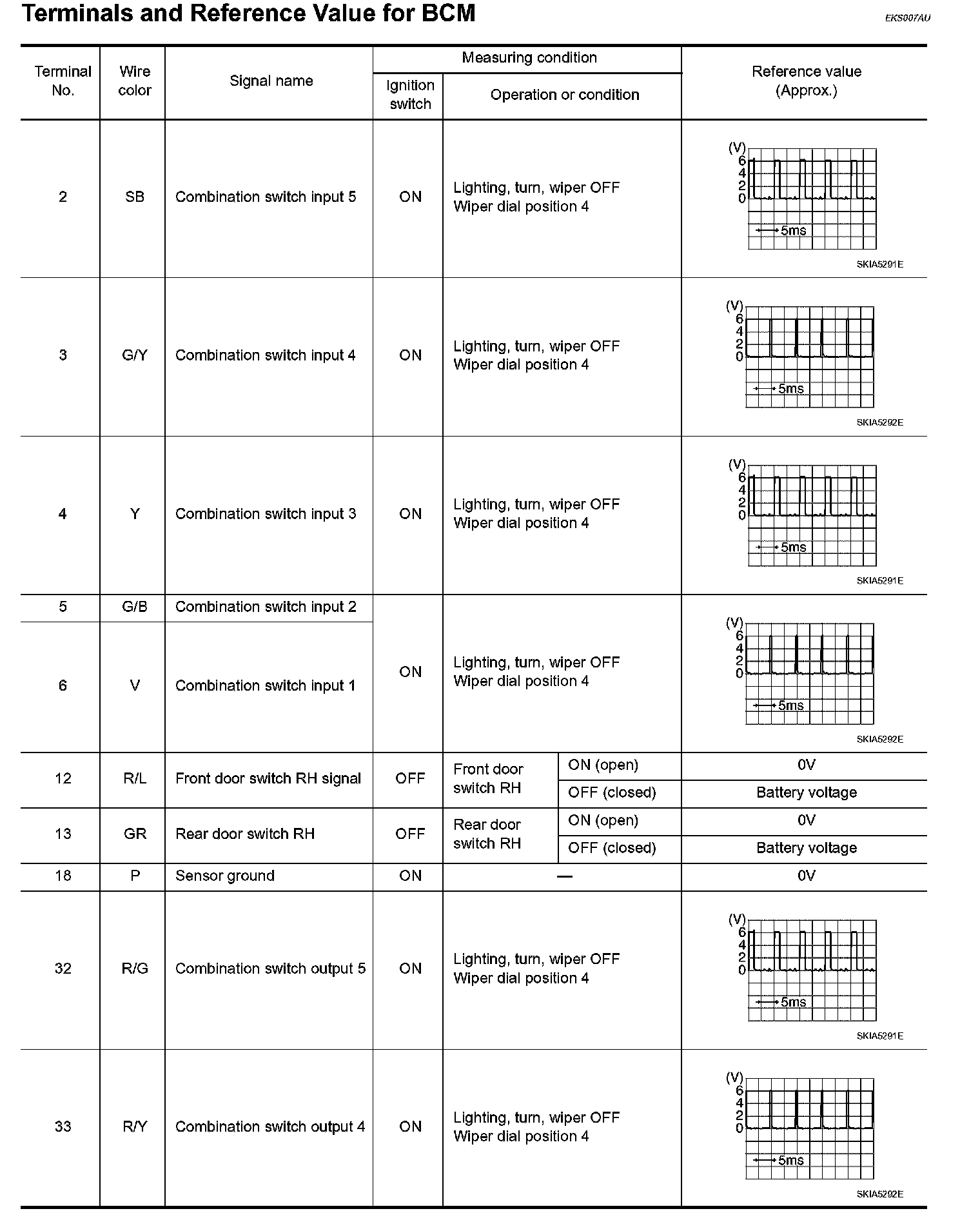 Terminals and Reference Value For BCM