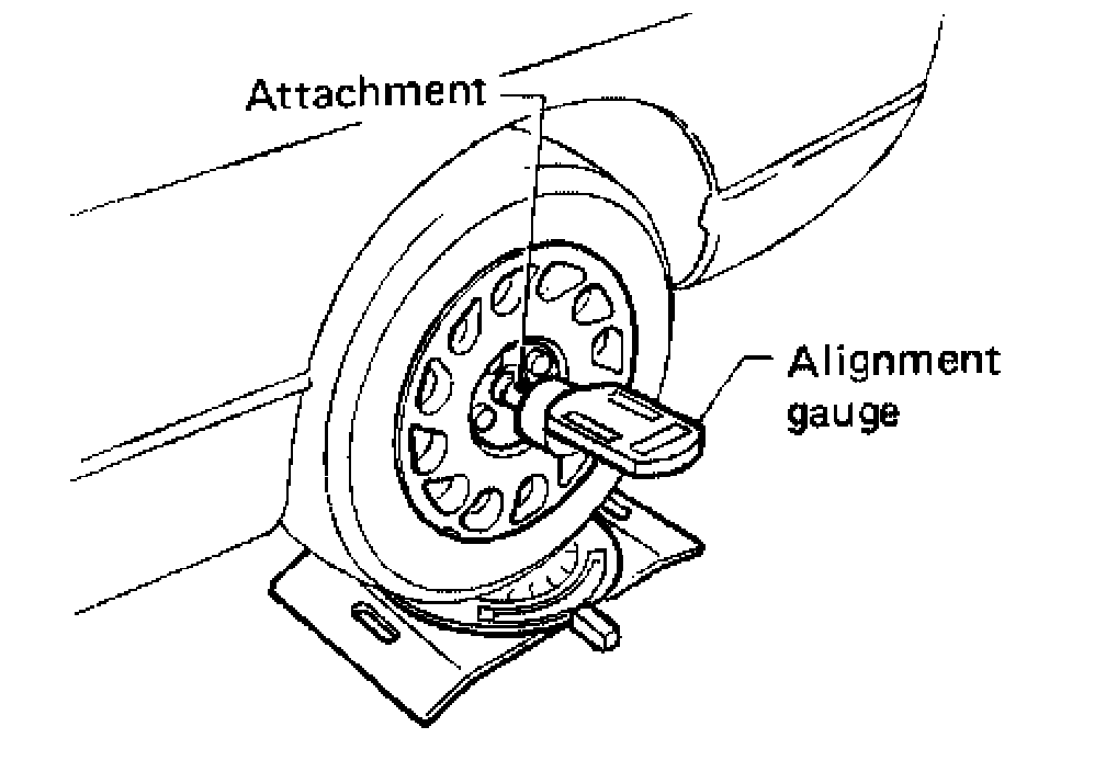 1. Measure camber and caster of both the right and left wheels with a suitable alignment gauge and adjust as necessary to specification.