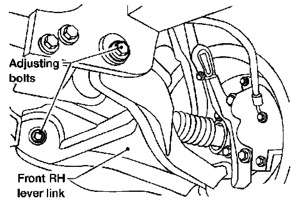 2. If outside of the specified value, adjust camber and caster using the adjusting bolts in the front lower link.